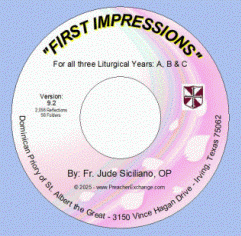 “First Impressions” is a service to preachers and those wishing to prepare for Sunday worship. The Dominican Friars sponsor it. If you would like “First Impressions” sent weekly to a friend, CLICK HERE.